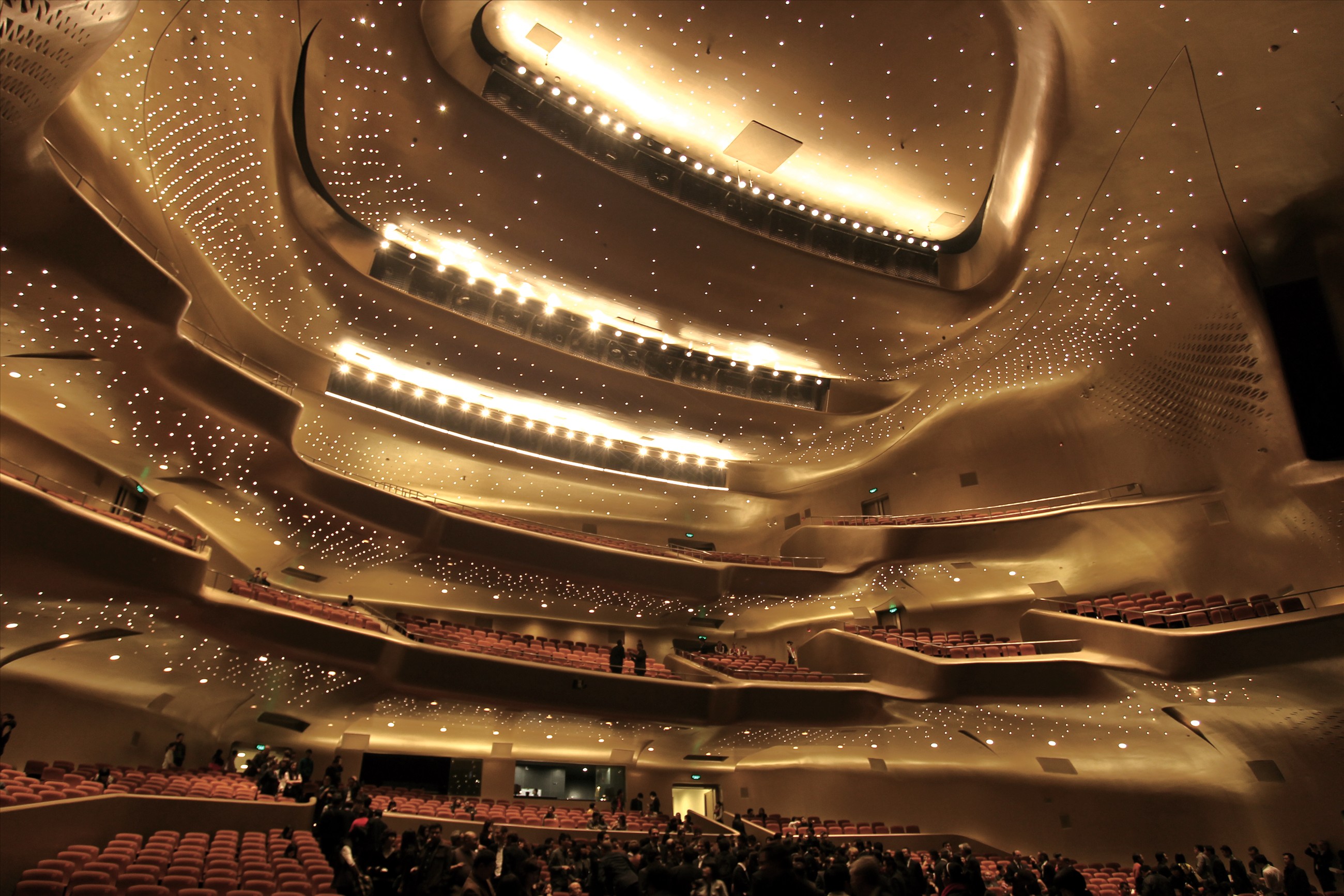 廣州大劇院由第一位獲得“普利茲克建筑獎”的女性、英籍伊拉克設計師扎哈?哈迪德設計,宛如兩塊被珠江水沖刷過的靈石,奇特的外形充滿奇思妙想。全球頂級聲學大師哈羅德?馬歇爾博士,為廣州大劇院精心打造的聲學系統(tǒng),達到世界一流水平,使其傳遞出近乎完美的視聽效果,獲得全球建筑界及藝術家的極高評價,為中國奪得無數(shù)殊榮。