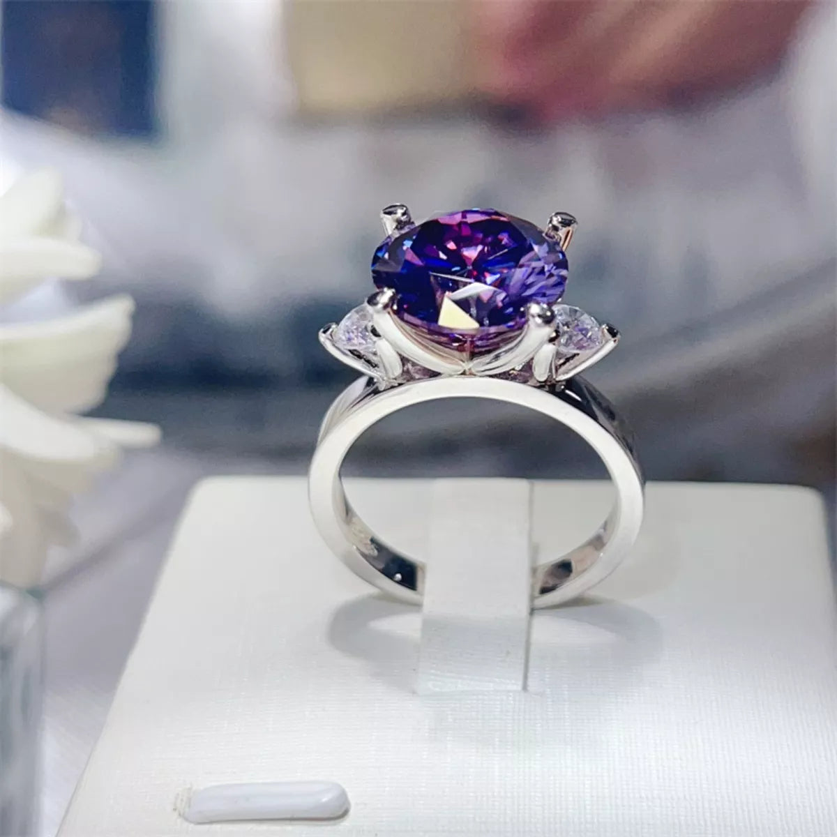 - Material: platinum-plated, 925 sterling silver, moissanite
